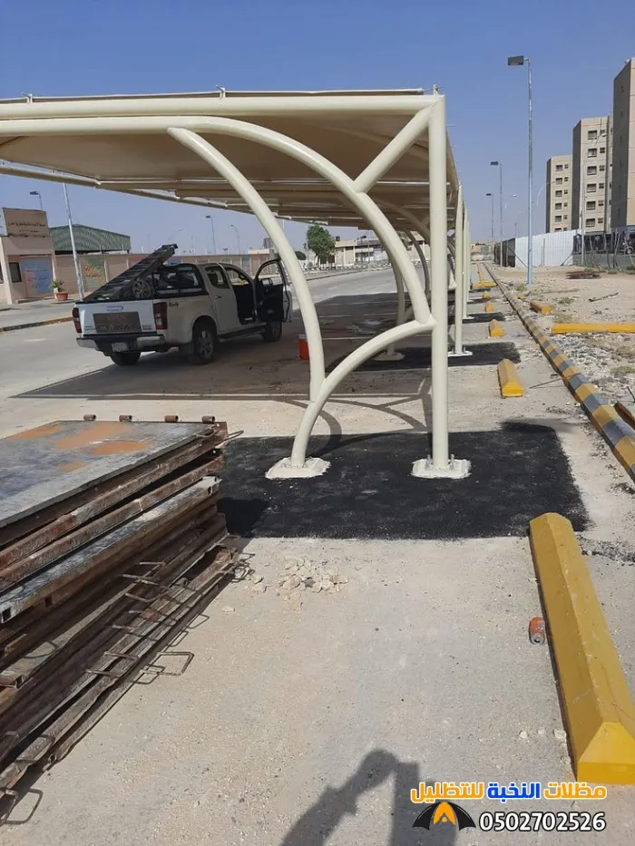 ويمكن تنفيذ المظلات حسب المساحة المطلوبة سواء لموقف سيارة واحدة أو عدة سيارات، مع مراعاة الشكل الجمالي للموقع وجودة الخامات المستخدمة.